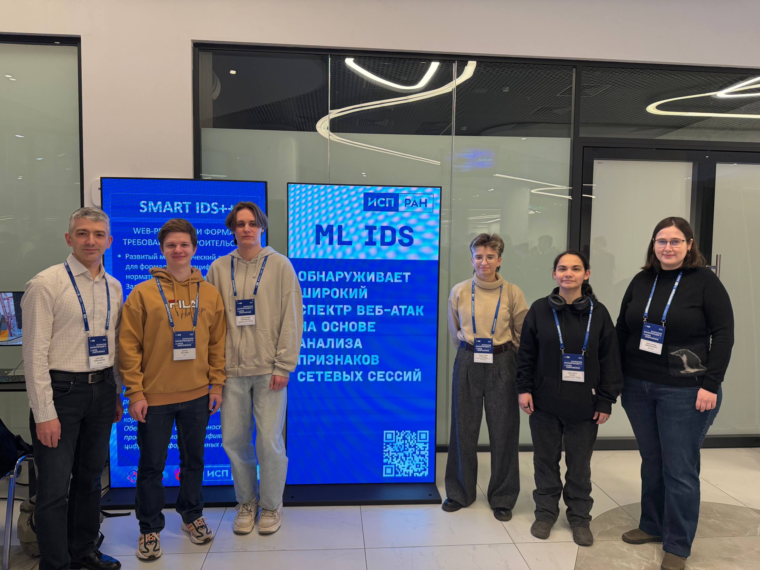 09.12.2025 Студенты ИПАИТ — Антон Ветров, Александр Тимошенко, Светлана Баева и Анастасия Ртищева — приняли участие в работе Открытой конференции ИСП РАН 2025 в кластере “Ломоносов”, г. Москва.